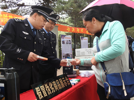 局组织协调银行、国税、地税、食药监等部门参加宣传日活动。活动现场,民警围绕识别假冒伪劣商品、假币等常识为群众进行讲解。同时,现场发放印有“吉林经侦”微信公众平台二维码的宣传单和警民联系卡,方便群众在网上开展法律咨询、举报案件线索。