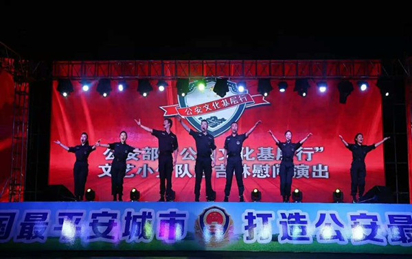当晚19时,演出在歌舞《中国美》中拉开了帷幕。四平市公安局民警张金才带着他的4名小徒弟,打着快板走上台,用一首《警营文化谱新篇》道出了四平市公安机关在警营文化建设中取得的累累硕果。来自新疆公安边防总队文工团的井怡丹用高亢的嗓音带来了一首《我在新疆等着你》,歌曲充满了浓郁的异域风情。来自南宁铁路公安局的警察魔术师秦国平就用他的独家绝活儿,将整晚的演出推向了高潮,节目也是一个比一个精彩。作为东道主的四平民警也不能逊色。来自四平市公安局的民警江淑慧、方宏伟为广大战友和父老乡亲献上了一段二人转《小区新貌》,用东北百姓喜闻乐见的曲艺形式唱出了基层民警在建设平安社区工作中的点点滴滴。小品、二胡、舞蹈……来自祖国各地的民警用自己精湛的才艺为大家带来了一次极致的视听享受。也让广大百姓了解到,人民警察不仅仅是酷暑烈日下的“焦警”、最美逆行者,他们也是有情怀、有激情、有温度的普通人。
