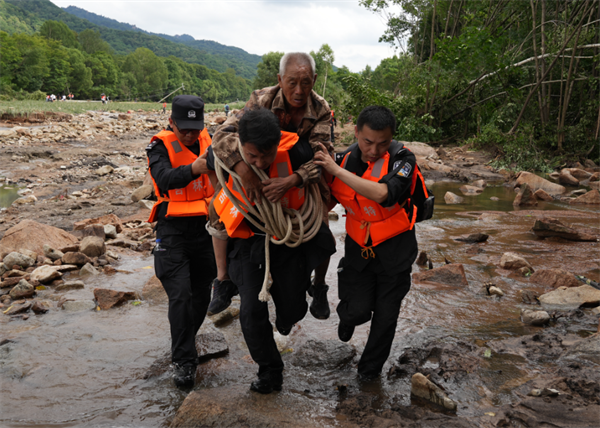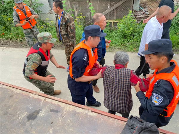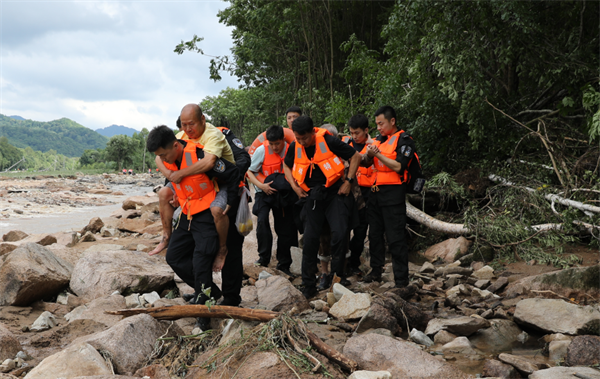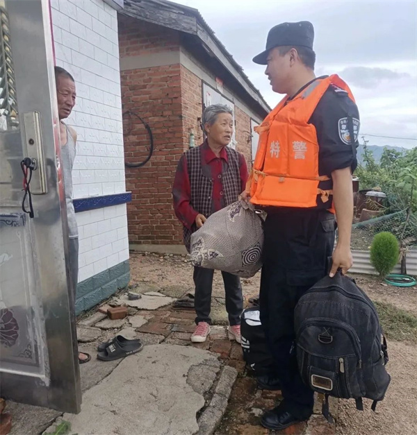 民警徒步蹚过乱石崎岖、地形复杂的道路,挨家挨户做村民的思想工作,逐一进行劝导说服,最终于17时40分许完成劝导撤离工作,成功将受灾村民共50余人护送至临时安置点。