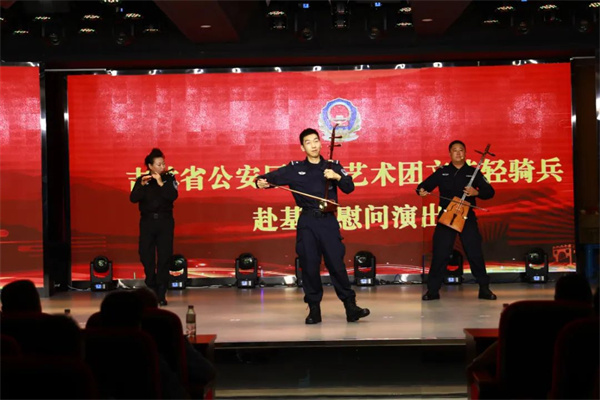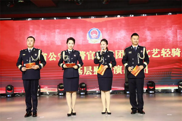 省警官艺术团文艺轻骑兵领队、省公安文联副主席孙学军宣读了省公安厅党委致广大基层公安民警辅警同志的慰问信,号召全体民辅警大力发扬攻坚克难、勇争一流的优良作风,以更加务实的举措全面推动吉林公安工作向全国第一方阵迈进,为维护国家安全和社会稳定作出更大贡献。