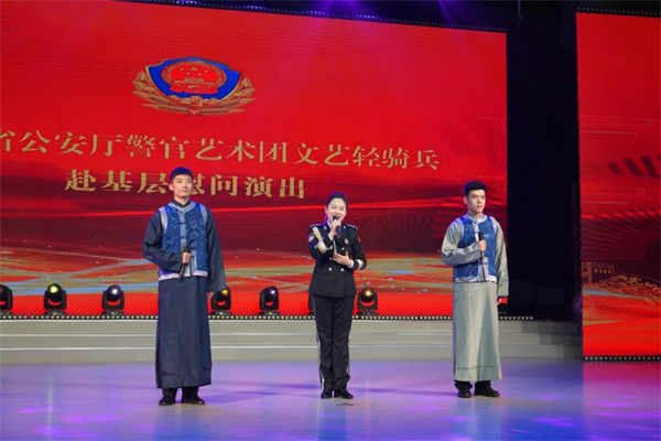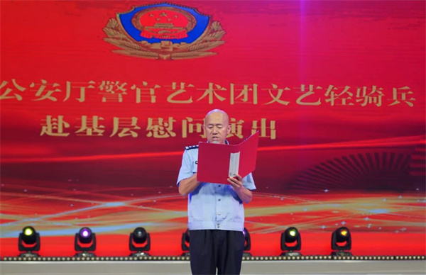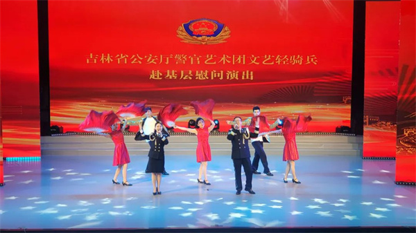 演出开始前,省公安厅警官艺术团文艺轻骑兵领队、省公安文联副主席孙学军宣读了省公安厅党委致广大基层公安民警辅警同志的慰问信,号召全体民警辅警大力发扬攻坚克难、勇争一流的优良作风,以更加坚定的信念、更加振奋的精神、更加务实的举措,推动吉林公安工作全面向全国第一方阵迈进,不断提升人民群众的安全感、获得感和幸福感,为维护国家安全和社会稳定、建设幸福美好吉林做出新的更大贡献!
