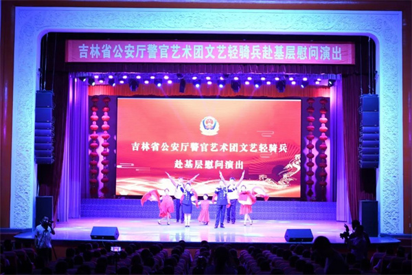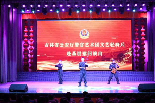 演出前,省警官艺术团文艺轻骑兵领队、省公安文联副主席孙学军宣读了省公安厅党委致广大基层公安民警辅警同志的慰问信,号召全体民辅警大力发扬吉林公安攻坚克难、担当作为、锐意创新、勇争一流的优良作风,以更加坚定的信念、更加振奋的精神、更加务实的举措,推动吉林公安工作全面向全国第一方阵迈进,奋力创建全国最安全省份,不断提升人民群众的安全感、获得感和幸福感,为维护国家安全和社会稳定、建设幸福美好吉林做出新的更大贡献!