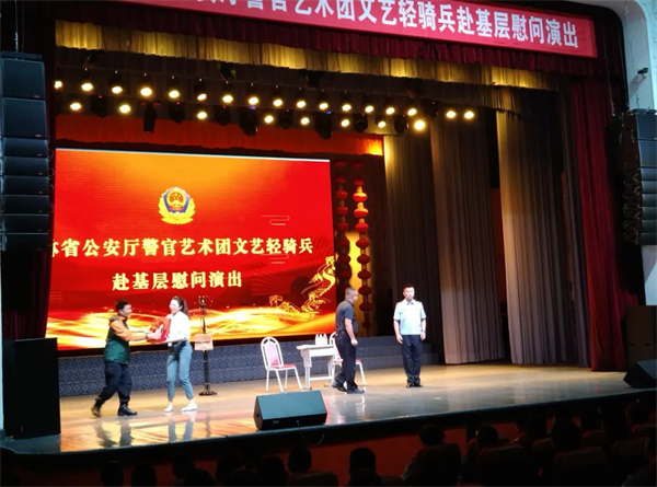 为传递省公安厅党委对一线民辅警的关心和厚爱,活跃基层警营文化生活,进一步凝聚警心、激励斗志、鼓舞士气,促进和谐警民关系建设,推动全国最安全省份创建工作。8月23日,吉林省警官艺术团文艺轻骑兵一行28人长途跋涉、风雨兼程,来到图们市公安局进行慰问演出。