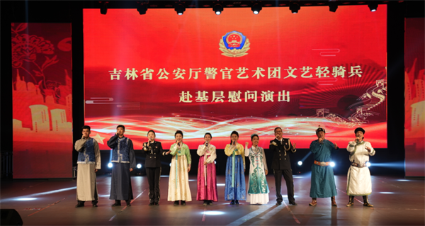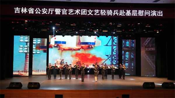 船营分局党委对轻骑兵一行的到来表示热烈的欢迎和衷心的感谢,省公安文联副主席孙学军宣读了省公安厅党委致广大基层公安民辅警同志的慰问信。演出在歌伴舞《好运全都来》中正式拉开序幕,女生小合唱《春风十万里》悠扬绵长,男声独唱《为人民服务》深情高亢,男生四重唱《不放弃》热情奔放,情景讲述《想你了》催人泪下。文艺轻骑兵的精彩演绎点燃了观众的激情,不时赢得热烈的掌声和喝彩。一首歌伴舞《领航》将本场演出推向高潮,演出圆满结束。
