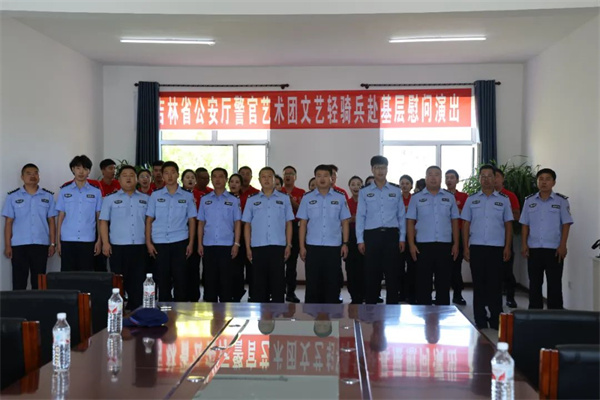 为传递省公安厅党委对基层广大公安民辅警的关心关爱和深切慰问,不断活跃基层文化生活,进一步凝聚警心、激励斗志、鼓舞士气,促进和谐警民关系建设,切实将“暖警惠警”工作落到实处,9月7日,吉林省警官艺术团文艺轻骑兵一行20余人走进舒兰市公安局平安派出所慰问演出,为奋斗在抗洪救灾一线的公安民辅警代表送去关心与祝福。