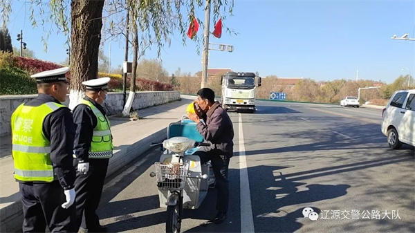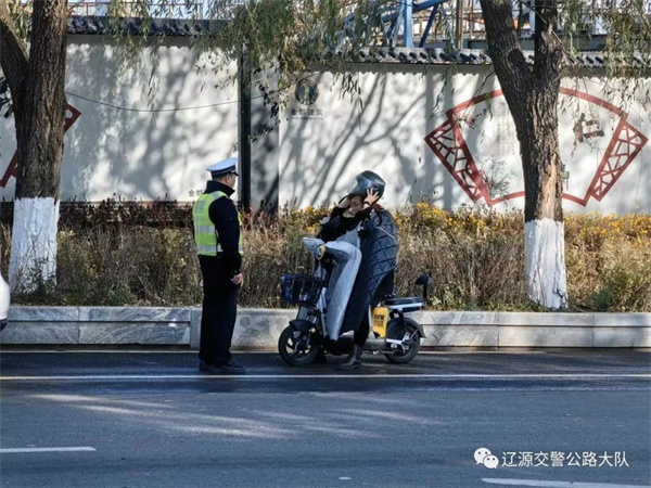 近日,辽源市公安局交警支队公路大队民警在早中晚群众集中出行时段部署警力,集中开展“一盔一带”安全劝导工作。