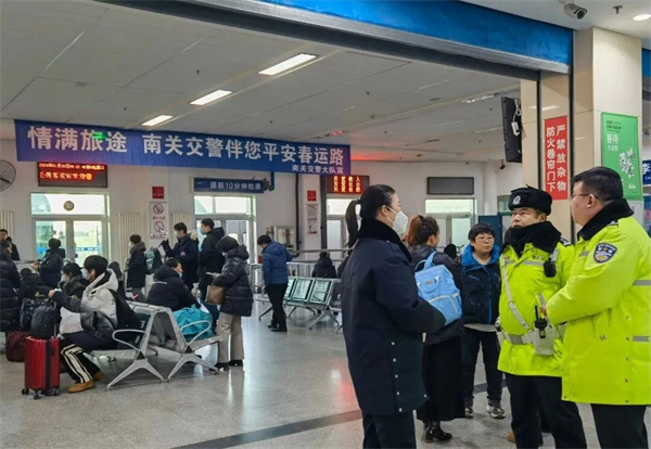 长春市公安局交警支队南关大队组织民警走进辖区高速客运站,开展春运交通安全检查,筑牢春运安全第一道防线。