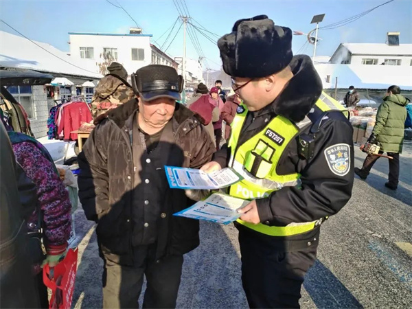 在通化,集安市公安局交警大队组织民警走进辖区农贸大集,开展交通安全宣传提示,全力维护辖区道路交通安全形势稳定。