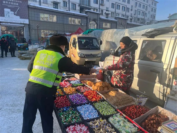 近日,通榆县公安局交巡警大队宣传民警辅警巧借“年货节”,开展交通安全宣传活动。