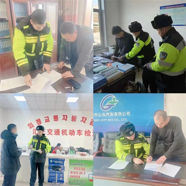 为全力做好春运期间道路交通安全管理工作,图们市公安局交警大队组织民警走进辖区重点客货运及危化品运输企业开展春运期间交通安全检查,强化企业落实主体责任,加强车辆源头管控。