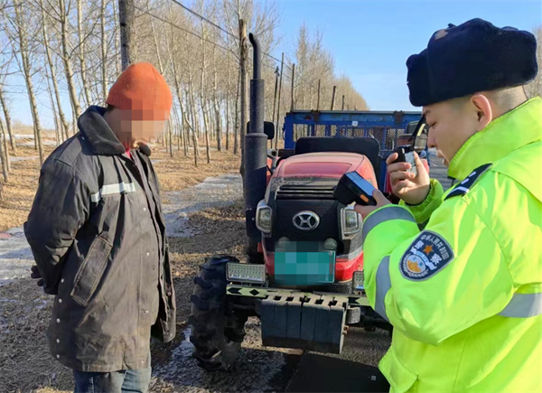 执勤民警立即示意拖拉机靠边停车接受检查,针对王某驾驶拖拉机实施违法载人的交通违法行为,民警对驾驶员和乘坐人进行严肃批评教育,详细讲解拖拉机违法载人的危害性,依法对驾驶人王某处以200元罚款,并对乘车人进行安全转运,及时消除了安全隐患。