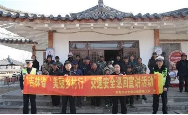 在延边,和龙市公安局交警大队联合西城派出所,组织民警深入西城镇金达莱村,在村委会与村民们“唠家常”。