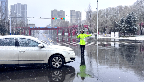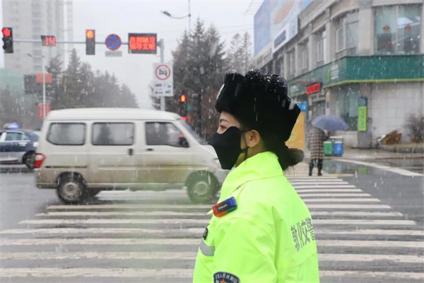 辽源:针对城区结冰湿滑路段,实施“点、线、面”立体勤务,在主干道、桥梁、学校周边等重点区域加强巡逻与执勤。