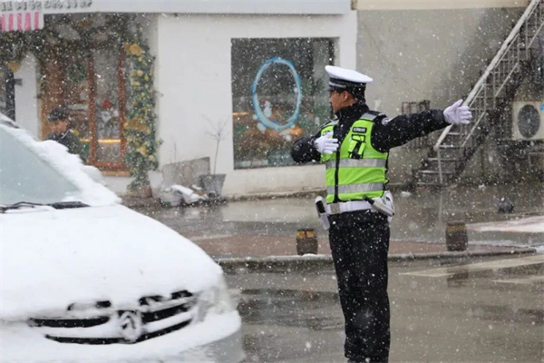 长白山:通过新媒体发布路况,执勤人员在主要路段指挥疏导,并在重点区域抛撒防滑料。
