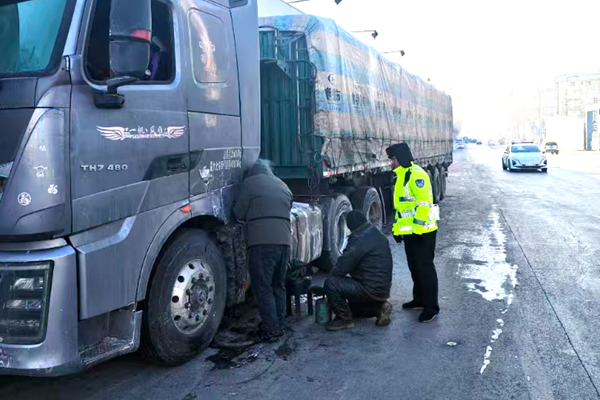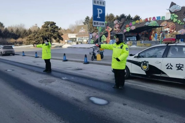 当地交警部门针对节日期间车流人流集中、路面易结冰的实际,科学部署警力,将重点路段列为管控重点,在易积雪结冰路段,民警定点值守与动态巡逻相结合,实时互通信息、处置突发情况,筑牢安全防线。