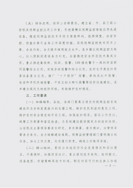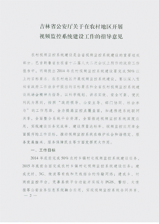吉林省公安厅《关于在农村地区开展视频监控系统建设工作的指导意见》